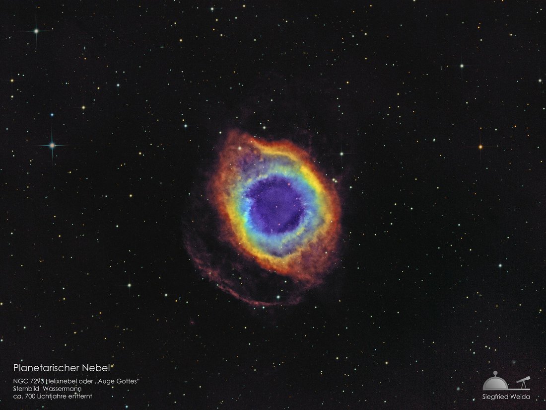 Eine weitere Möglichkeit, wie ein Stern sein Leben beendet, ist auf der Aufnahme des Helixnebels zu sehen.