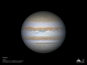 Der größte Planet im Sonnensystem ist der Jupiter, benannt nach dem obersten Gott der Römer. Er besitzt einen etwa 10 mal so großen Durchmesser wie unsere Erde, und etwa die 318-fache Masse unseres Heimatplaneten.