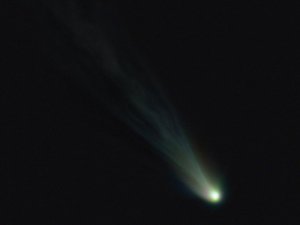 Kometen sind im Kern sehr kleine Objekte. Sie bestehen aus einem meist weniger als 10 km großen „schmutzigen Schneeball“ aus Eis, verschiedenen Gasen und Staub. Gelangt dieser Schneeball dicht an die Sonne, so beginnt er zu schmelzen, und entwickelt seinen bekannten Schweif. Dabei kann es jedoch auch passieren, dass der Schneeball zerfällt, wenn er zu dicht an die gewaltige Hitze der Sonne gelangt. Dies ist auch beim hier gezeigten Kometen Leonard passiert. Kurz vorher gelang den Fotografen der Sternwarte noch dieses Foto